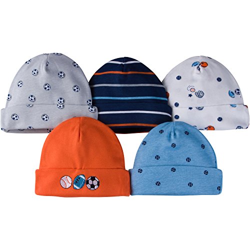 Gerber Baby Boys 5 Pack Cap, Lil Athlete, 0-6 Months