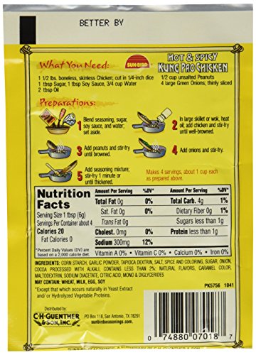 Sun-Bird HOT & SPICY KUNG PAO CHICKEN Asian Seasoning Mix, .87oz (4-pack)