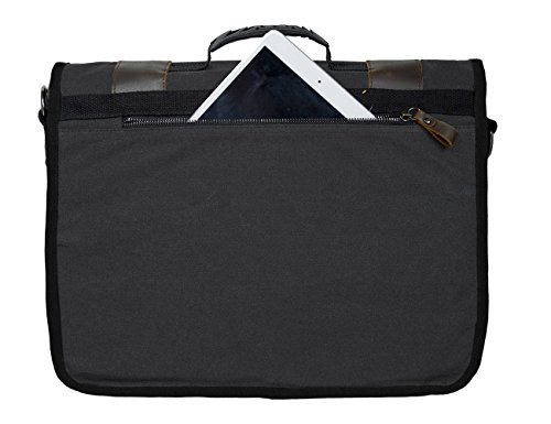 -. Feature : ECOSUSI Canvas Leather Messenger Bag is made of high density canvas, retro metal buckle and decoration with leather accents / Approx dimensions: 16.5 L x 12.9 H x 3.9 W inches; Net weight: about 2.2 pounds; With thicken shoulder straps (27"~55") which is adjustable with a buckle / Exterior structure: 2 medium sized open pockets, 1 zipper pocket and 5 pen holders upfront and 1 back zipper pocket can hold IPAD AIR(9.7") but no padded protect / Interior structure: The entire main opening with 1 main compartment, 1 padded compartment is perfect for up to 14.7" laptop, tablet, portfolio carrier, 1 wallet holder, 1 cell phone holder - Quilted with 5MM cotton on the bottom and back / This canvas bag is general used for men and women, specially designed for various occasions, no matter you want to go to school, office, travel, or just daily use