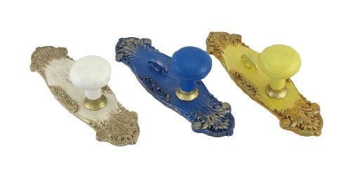 - Title : Set of 3 Vintage Door Knob Wall Pegs Hooks Yellow, Blue, White