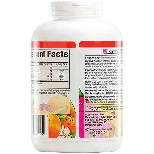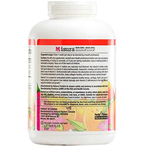 Natural Factors delicious chewable vitamin C wafers are naturally fruit flavored. Vitamin C is an important antioxidant that helps protect the body against environmental pollutants and deficiencies in the daily diet. Kids of all ages love them!