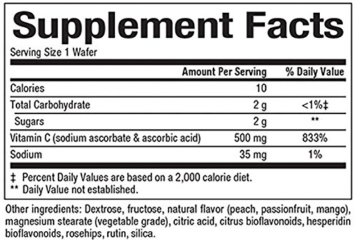 GET YOUR DAILY DOSE: Our vitamin C wafers contain 500mg of vitamin C in a blend of citrus bioflavonoids, hesperidin, rosehips and rutin to optimize the body’s use of vitamin C.