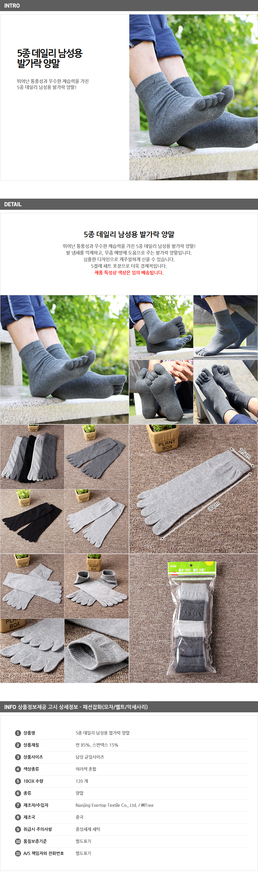 Five pairs of men's toe socks ventilation daily dehumidification