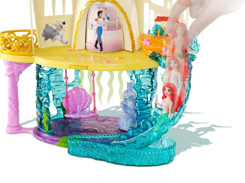 - Have Ariel slide down her sparkly green slide and swim with Flounder to explore underwater treasures