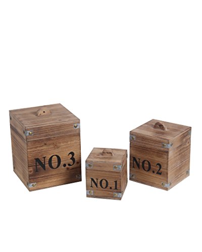Privilege 88572 3 Piece Wooden Boxes Traditional Box, Wood/Black, Medium