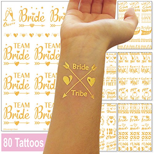 - BRIDAL TATTOO PARTY ACCESSORIES - great for brides, bachelorettes, bridesmaids, maid of honor and friends of the bride on a bridal shower party. Amazing cute sexy shiny foil gold fake tattoo supplies for the best girl's night or adult night ever!