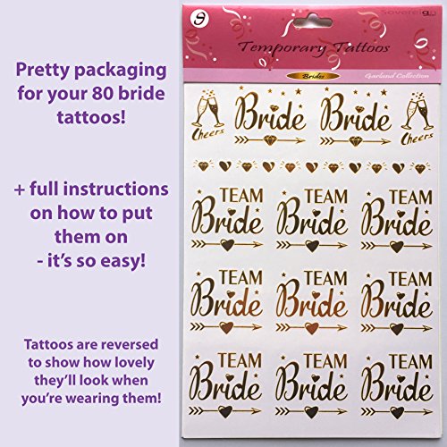 80 Bride & Bachelorette Party Bridal Tattoos - Team Bride Squad Bride Tribe Gold Bridal Temporary Flash Tattoo Stickers - Metallic Bridesmaid Favors for...
