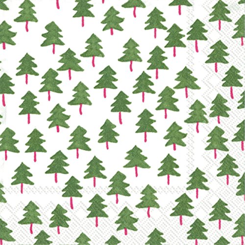 Ideal Home Range 20 Count Cocktail Napkins, Twee Trees White Green