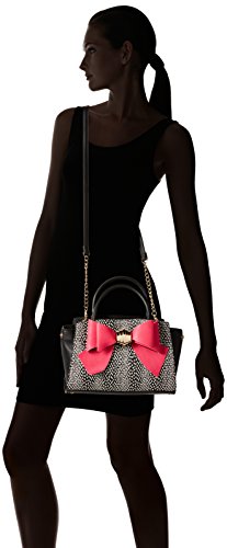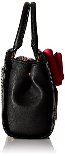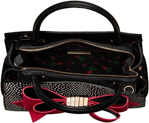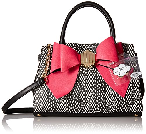 Product DescriptionBetsey Johnson polka-dot satchel with a back slip pocket and removable bow. Includes top handle and long strap.0