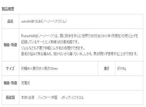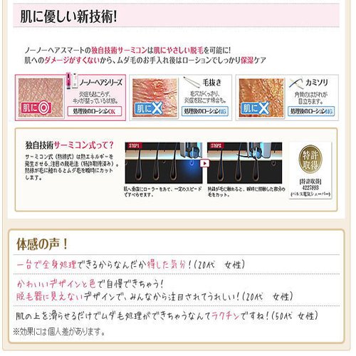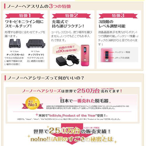■ "no! No! HAIR" (Noohnoa) is a thermicone (hot wire) type epilator that has already recorded sales of 2.5 million units worldwide (as of January 2011), mainly in Europe and the United States.