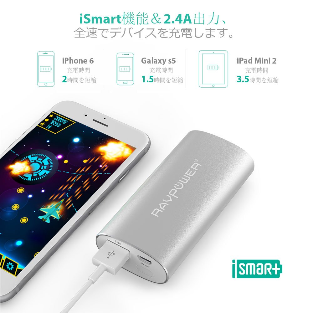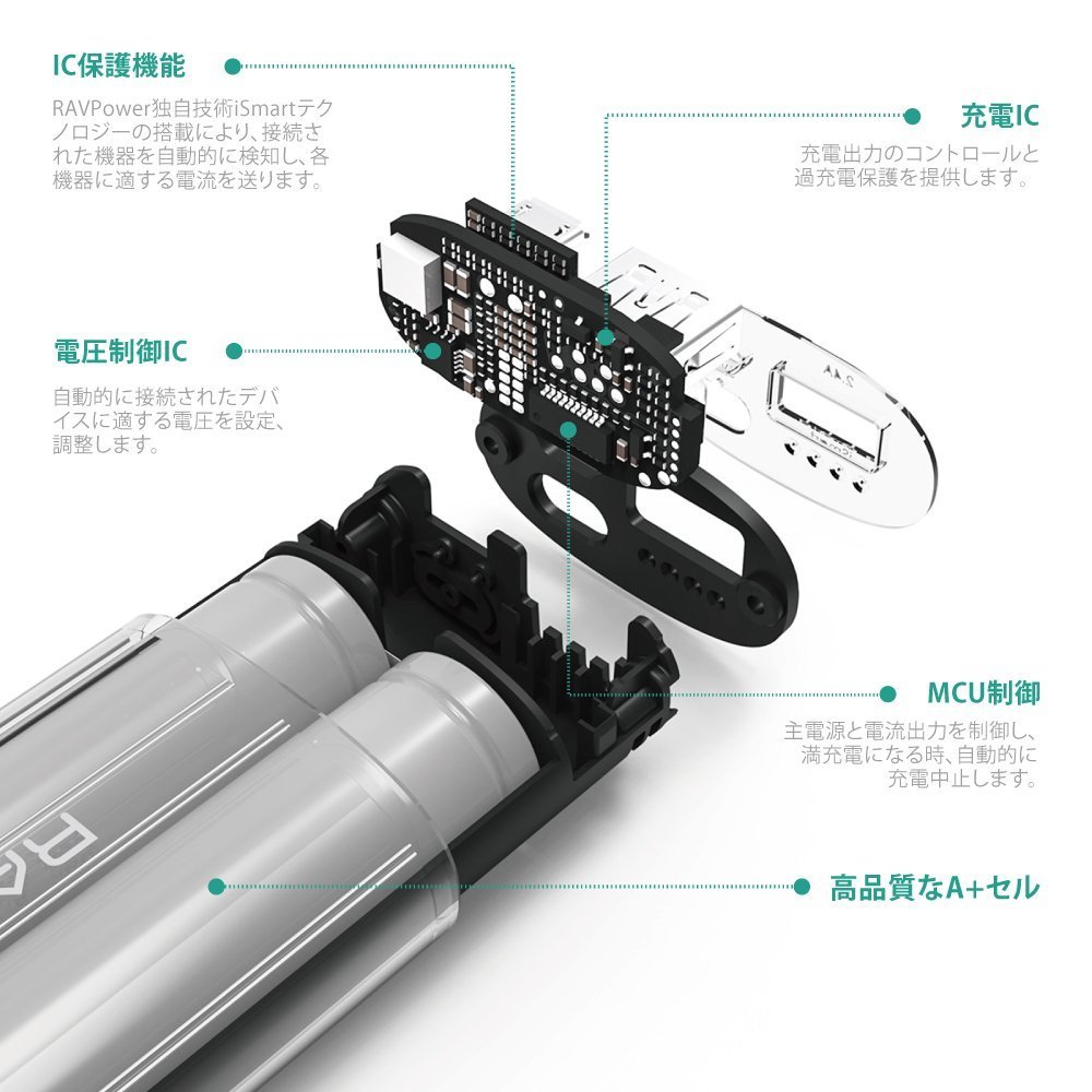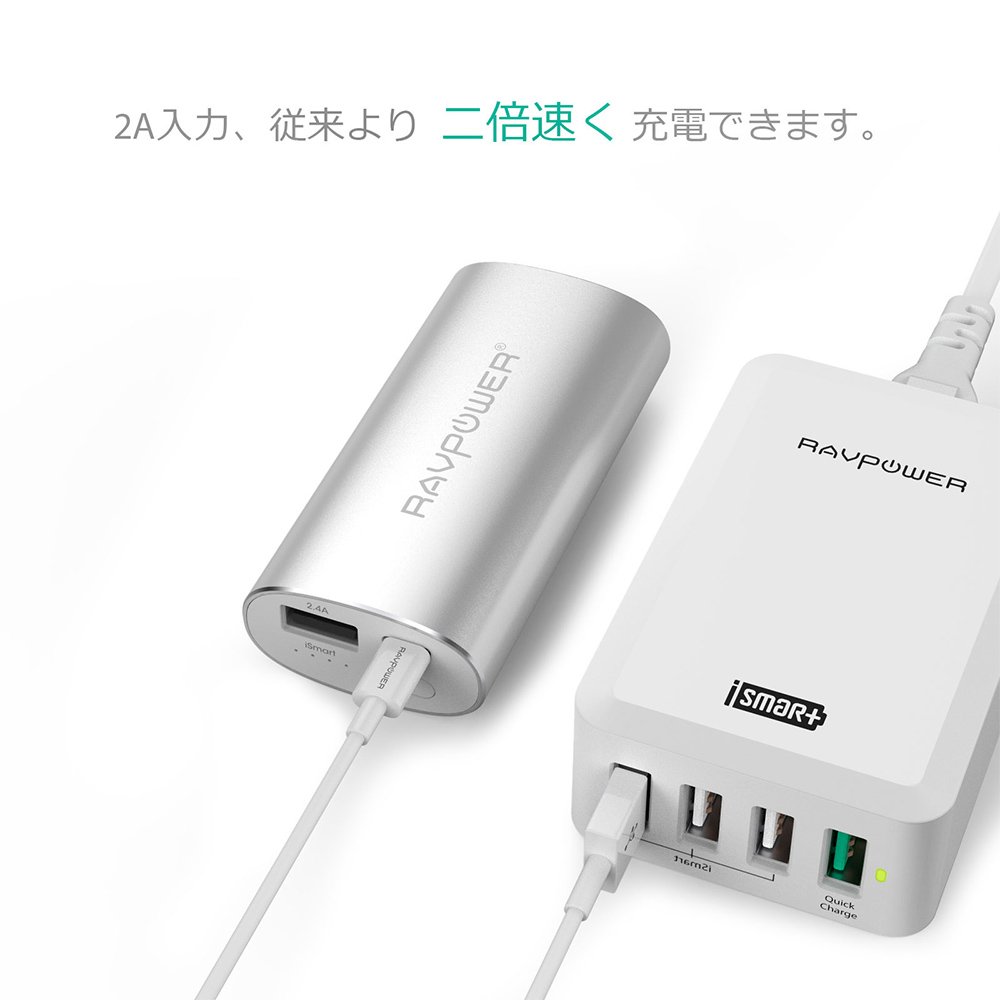 RAVPower proprietary technology By installing the iSmart function, connected devices can be automatically detected, the optimum current can flow through each device, and the charging time can be shortened.