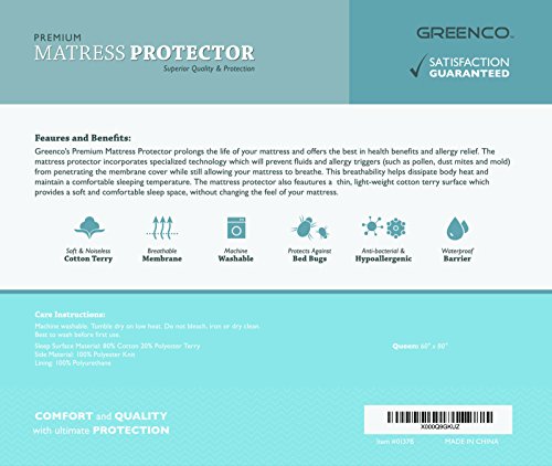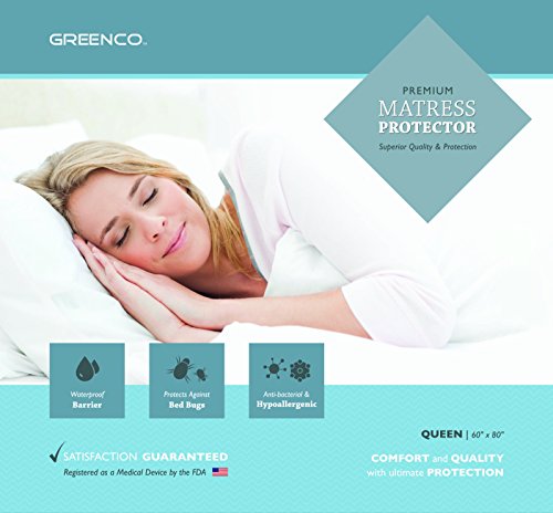 -. Title : Greenco Premium Hypoallergenic Waterproof Mattress Protector, King, Vinyl Free