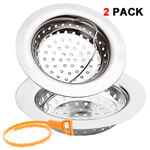 2 Pieces Kitchen Sink Strainer Baskets by EZColoris, with Drain Cleaning Tool Stainless Steel 3mm Hole Filter Large Rim Diameter 4.3 inch Anti Clogging for Sink
