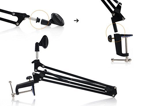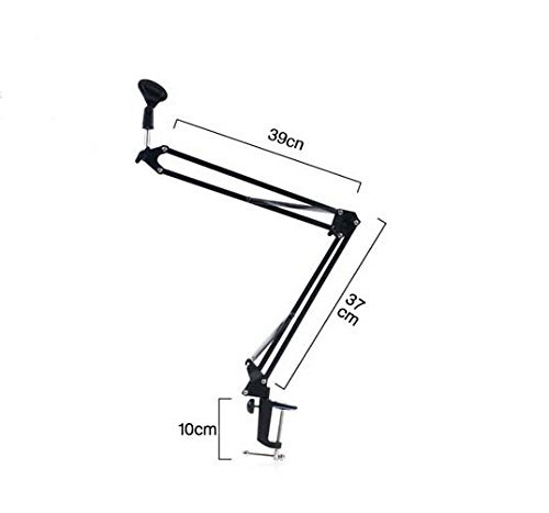 -. Brand : Generic -. EAN : 0740690677501 -. Feature : Made out of all steel construction, sturdy and durable Stable, Tough, and Affordable. Adjustable design make it simple for you to adjust the right height / Can be mounted on the announcers' desk / Ideal for radio broadcasting studio, voice-over sound studio etc. / The double-braced arms add strength. Your microphone is held safely on this scissor arm microphone mount. -. Label : Generic -. Manufacturer : Generic -. Model : ZLMKUC06 -. MPN : ZLMKUC06 -. PackageQuantity : 1 -. PartNumber : ZLMKUC06 -. ProductGroup : Musical Instruments -. ProductTypeName : SOUND_AND_RECORDING_EQUIPMENT -. Publisher : Generic -. Studio : Generic -. Title : Adjustable Metal Microphone Suspension Scissor Arm Stand Holder for Handheld Microphone Mic Desk Table (Micphone Not Included) -. UPC : 740690677501