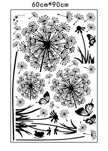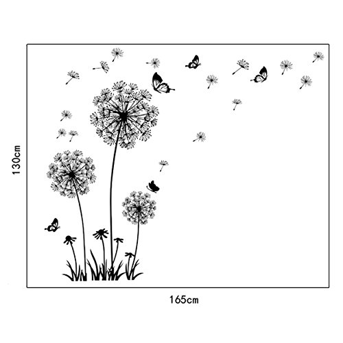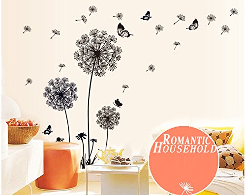 ufengke Black Dandelions and Butterflies Flying In The Wind Wall Decals, Living Room Bedroom Removable Wall Stickers Murals