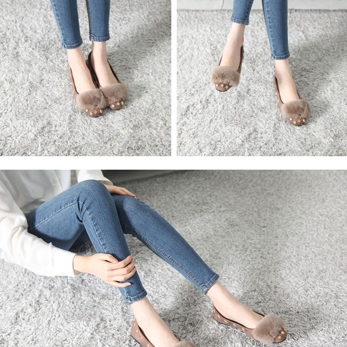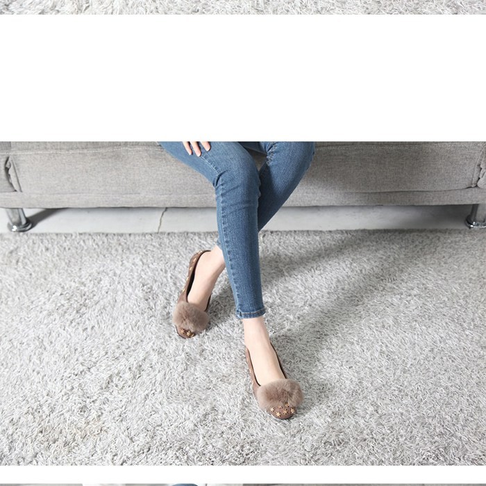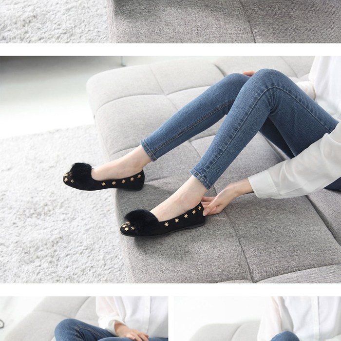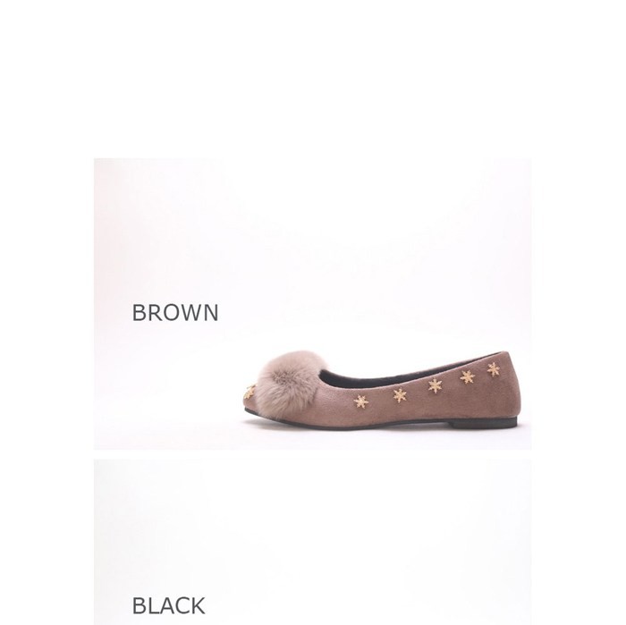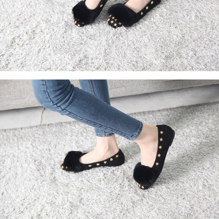 商品名:パンプス レディース フラットパンプス ペタンコ スタッズ フェイクファー 2017 秋冬 ファッション 靴 婦人靴