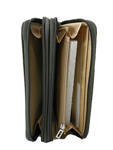 Product Description Measures 7 1/2 inches by approximately 4 inches. There are 2 separate zipper compartments.? One side opens to 12 credit cards slots, an additional zipper pouch, and 4 large slip pockets for money. The other side opens to a large compartment for change. Tag Information: Style No.:? BB509257 Name: Ware SLG Color: Natural 0