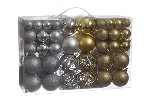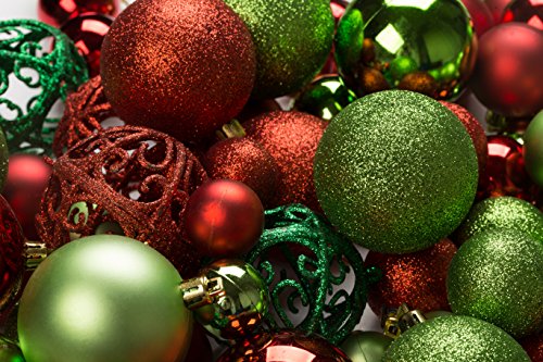 -. Feature : Pack Of 100 Christmas Tree Ornament Balls / 4 Amazing Finishes - Shiny, Matte, Glitter, And Pierced Classic Design / 3 Size Balls 1.2" 1.6" & 2.4" / Package QTY: 36 1.2 Inch, 32 1.6 Inch & 32 2.4 Inch Easy Hanging Ornament Balls