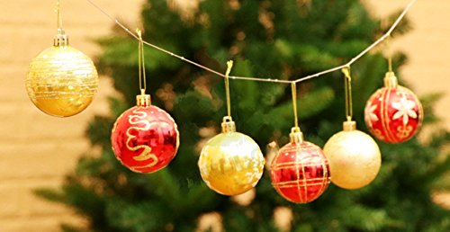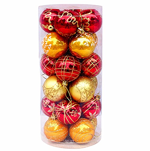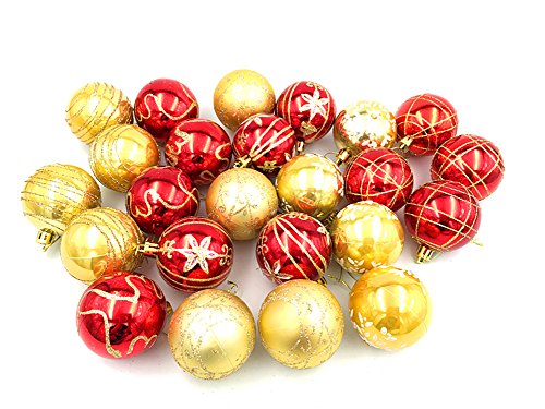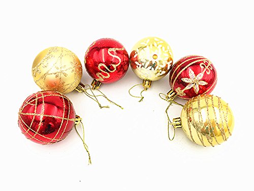 24pcs Christmas Ball Baubles,2.4" Shatterproof Assorted Painting Patterns Hang Balls Pendant for Xmas Tree decoration by Alimitopia(6cm,Red&Golden)