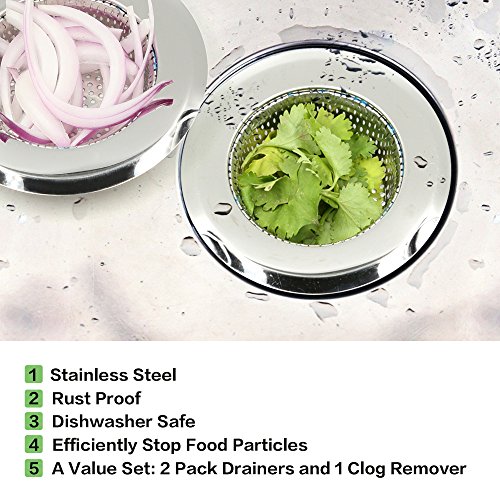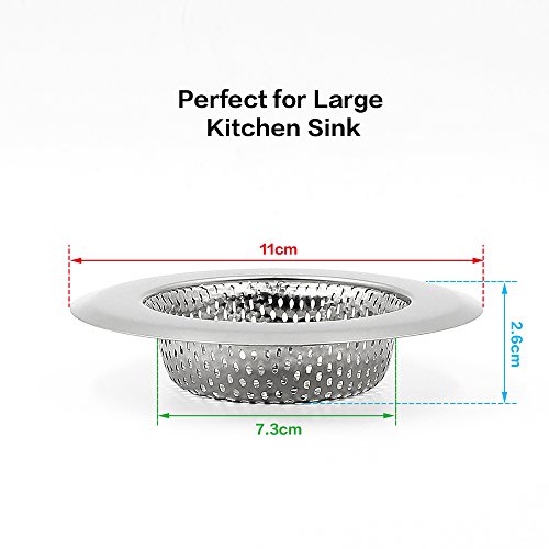 ★Include 2 stainless steel sink strainers and 1 drain snake clog remover, perfect for LARGE kitchen sinks.