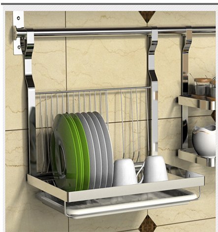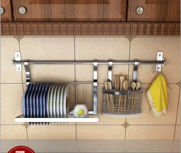 Wall Mounted Kitchen Cookware Organizer Stainless Steel (31-inch Bar + Flatware Utensils Caddy+dish rack)