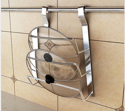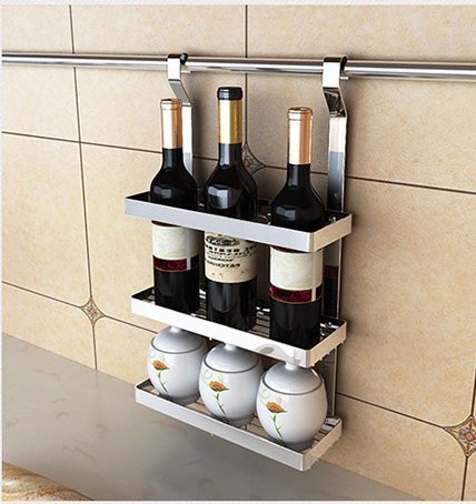 Kitchen Cookware Organizer Stainless Steel with Pot rack Lid Holder Spice Rack Wine Rack Knife Block Chopping Board Holder Flatware Utensils Caddy Dish Drying Rack 6 Utility Hooks Wall Mounted