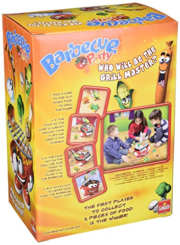 -. Binding : Toy -. Brand : Goliath Games -. Department : Assorted Kids Games -. EAN : 8711808306332 -. Feature : Features a happy smiling ticklish barbecue base / Includes 16 wide eyed food item characters and barbeque tongs / Teaches ton based game play / Develops fine motor skills / Ages 4 and up / Draw a card, then gently put that food item onto the grill / If that item is already on the grill, you can take it off / But watch out--if you're not careful the grill will jump and send the food flying! / The first player to get three foods off of the grill wins the game / For 2 or more players ages 4 and up--tested for safety and quality -. Genre : party -. IsAdultProduct : 0 -. ItemPartNumber : ASMBBQ01US -. Label : Goliath Games USA -. Manufacturer : Goliath Games USA -. Model : 30633 -. MPN : ASMBBQ01US -. PackageQuantity : 1 -. PartNumber : ASMBBQ01US -. ProductGroup : Toy -. ProductTypeName : TOYS_AND_GAMES -. Publisher : Goliath Games USA -. Studio : Goliath Games USA -. Title : Barbecue Party Game -- Put Food on the BBQ Grill Before it Goes Flying Off -. UPC : 852791003032 -. Warranty : 30 day warranty against manufacturer defects