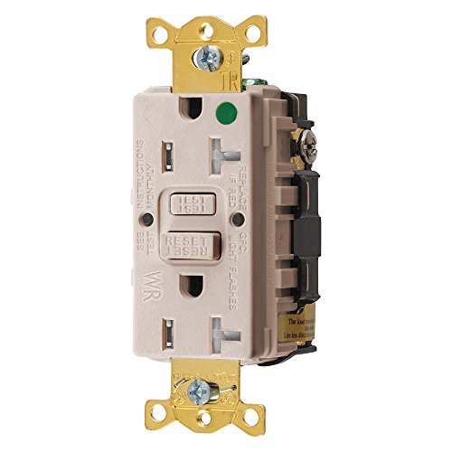 Hubbell GFTWRST83LA Gfci Heavy Use Receptacle, 20 Amps, Tamper/Weather Resistant, 5-20R, Decorator, Self-Testing: YES, Light Almond