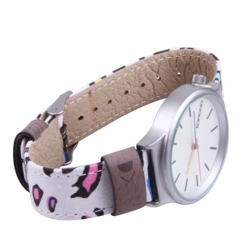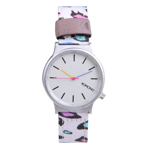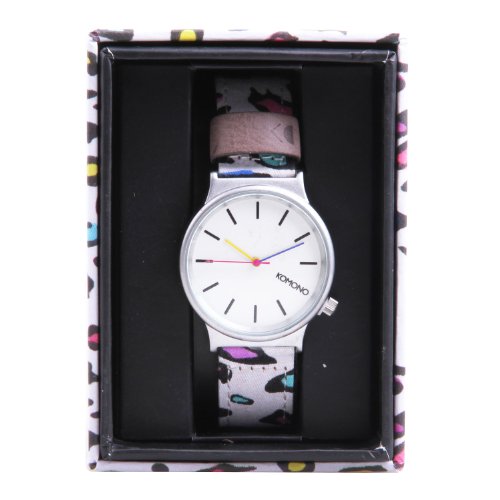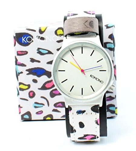 Studio : Komono Publisher : Komono Binding : Watch Product Description Komono combines style and function with a retro-futuristic slant on their line of slickly designed time pieces. Belgian designers Anton Janssens and Raf Maes deliver watches in a wide range of unique colors and patterns that will certainly add flavor to any wardrobe. The Wizard model features a 36mm face with metal case, Japanese Quartz movement, stainless steel back, and is water resistant to about 90 feet (3 atm). This is the 80s Leopard version from the Komono's special Print Series and features a fabric wristband with genuine leather details and lining. 0