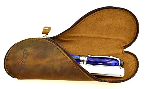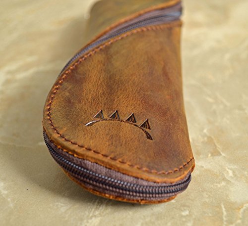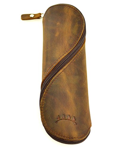 Genuine Leather Pen & Pencil Case with Zipper Close by Timber Ridge (Brown)