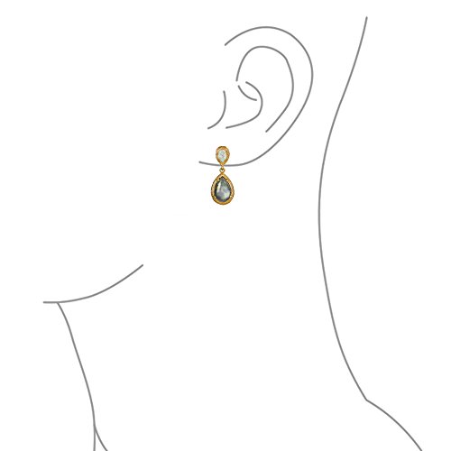 -. Feature : Exude stunning boho chic style with the beauty of natural gemstones witb these sublime drop earrings. Highlighed by a lustrous double teardrop design accented by mesmerizing labradorite and prehnite stones finished in gold plated .925 silver. / For Pierced Ears, Post with Friction Back / Material: .925 Sterling Silver, Gold Plating, Labradorite, Prehnite / Measure: 1.10 in L x 0.45 in W / Weight: 4.1 Grams