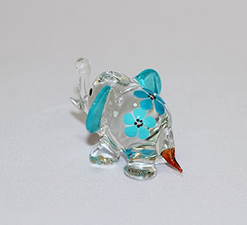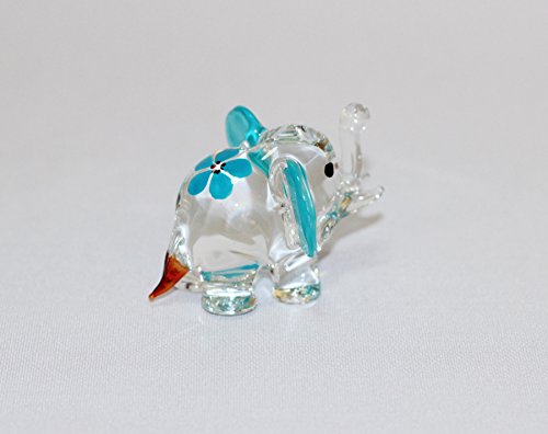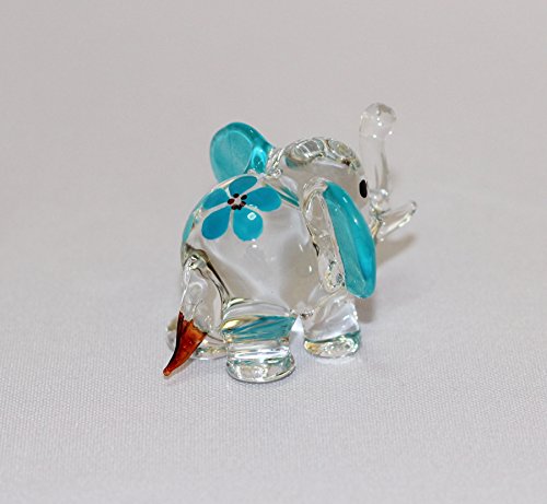 Dollhouse Miniatures Hand Blown Art Blue Elephant Flower FIGURINE Animals Decor