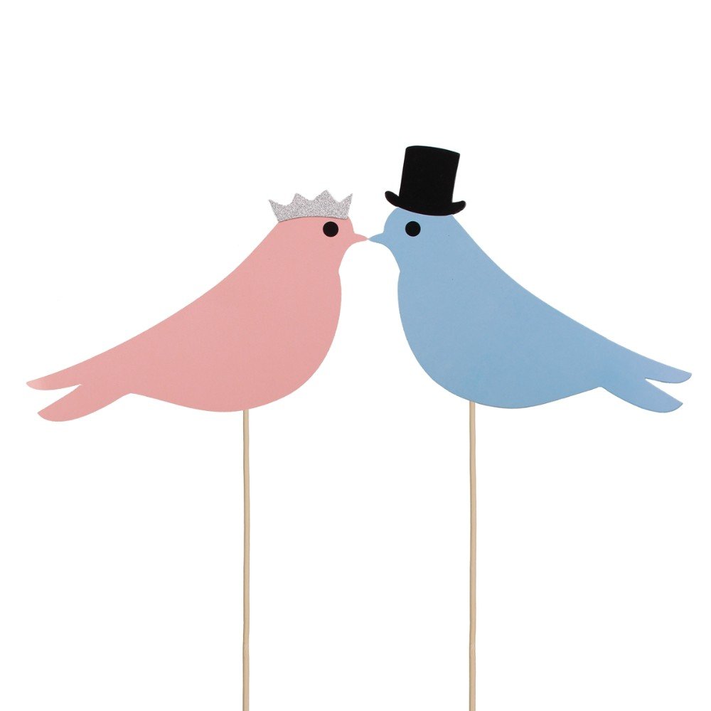 Pink and blue birds symbolize happiness.