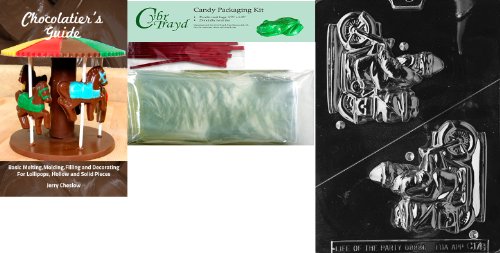 Cybrtrayd 3D Santa on Cycle Chocolate Mold with Chocolatier's Bundle of 25 Cello Bags, 25 Red Twist Ties and Chocolatier's Guide