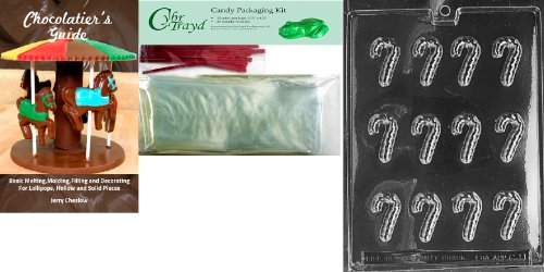 Cybrtrayd Small Canes Chocolate Mold with Chocolatier's Bundle of 25 Cello Bags, 25 Red Twist Ties and Chocolatier's Guide