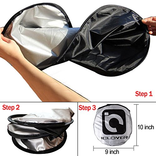 Premium Material ICLOVER's exclusive Sunshades are made of Aluminum Foil which is engineered to be durable yet easily folded to be stored in the draw-string storage pouch. It resists water absorption to make sure all snow and frost on the outer surface can be removed with ease.