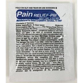 Product Description 2 tablets in a travel size individually sealed packet. Pain relief PM nighttime sleep aid. *Compare to the active ingredients in Tylenol PM. 0