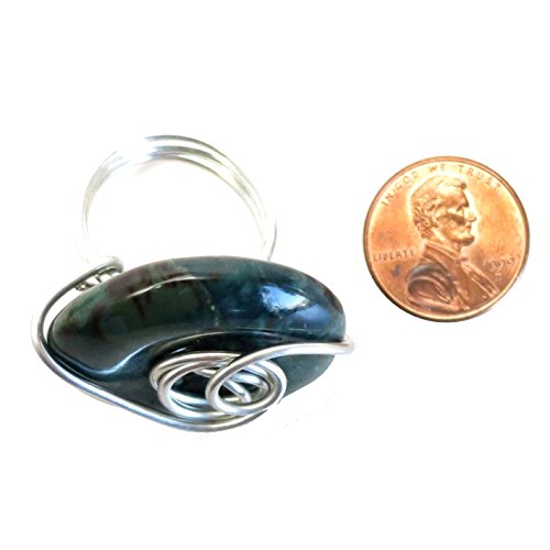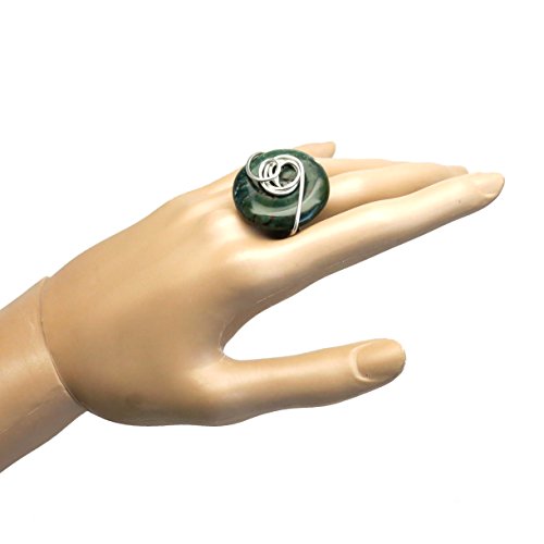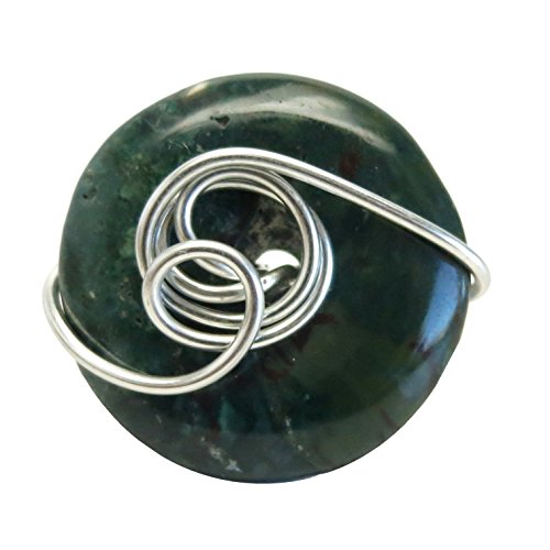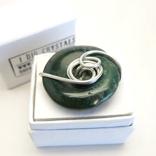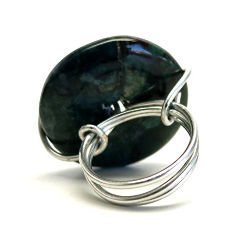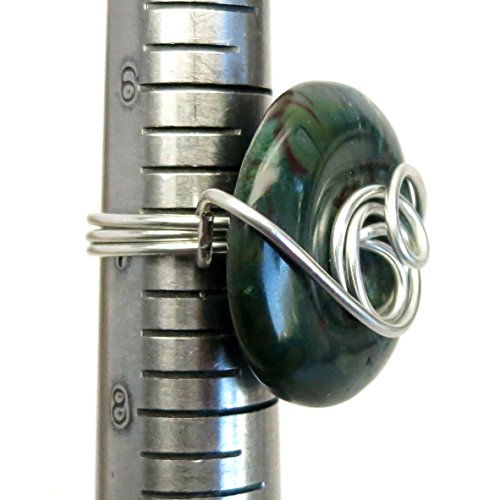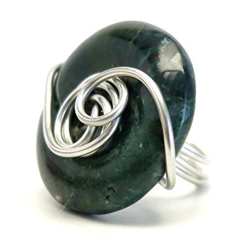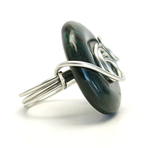 -. Title : Bloodstone Ring 08 Green Donut Stone Wire Wrapped (Size 7)