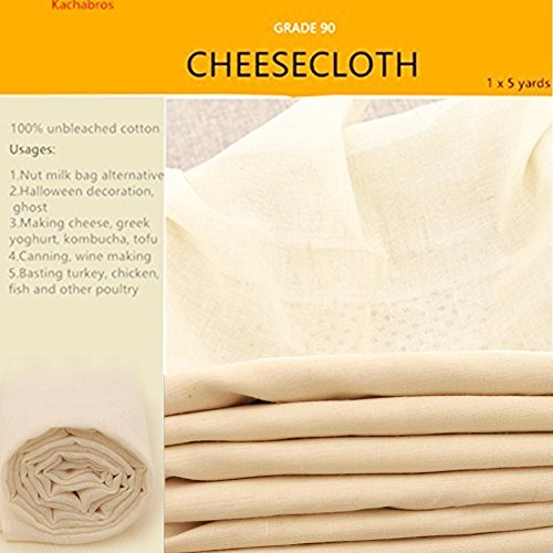 Studio : Kachabros Publisher : Kachabros Product Description Wide usages: 1.Nut milk bag alternative(food strainer for milk, tea, jelly, broth, fruit and vegetable juicing, bean sprouting) 2.Bags for spices, herbs, handmade soaps 3. Basting turkey, chicken, fish and other poultry 4. Canning, wine making 5. Making cheese, greek yoghurt, kombucha, tofu 6. Art and craft 7. Cleaning, dusting 8. Halloween decoration, ghost Package includes: 1 x 5 yards cheesecloth Warm and Sweet Reminders: Before the first time you use it for food preparation, please put it into a pot and boil it with water at least 15 mins, because it is unbleached, you can find dirt on it. 0
