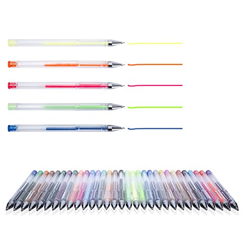 -. Feature : Set is the perfect gift idea to emerging artists as well as confirmed ones. / Convenient Artist packaging outfitted with four trays for easy reach and use. / Each gel pen can be stored in its own individual insert and comes with a cap for long-lasting use. / Deal for embellishing craft projects with a variety of bright colors. Free-flowing ink provides smooth, crisp application. Acid-free design with 0.8-1.0 mm tips. / Colors include glitter, neon, metallic, swirl and two black gel pens.