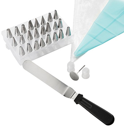 - A more complete kit: Containing a total of 24 tips, 12 disposable piping bags, 1 reusable piping bag, two couplers