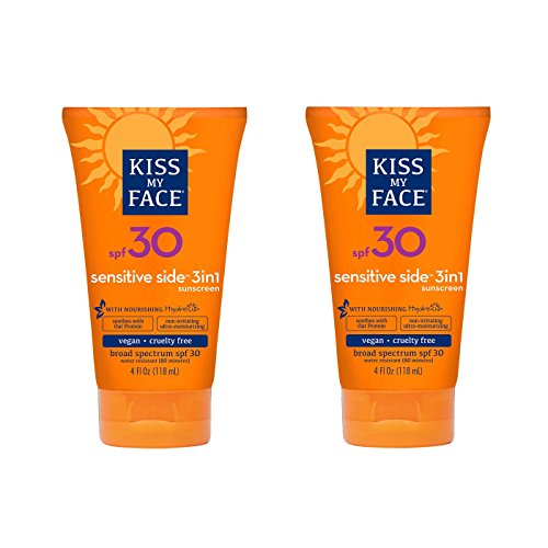 Kiss my face sunscreen, SPF 30 combines oat protein and oat beta glucan, a dynamic duo of patented ingredients that reduce irritation and inflammation and fight against damaging free-radicals as they moisturize your skin. Oat beta glucan has been clinically proven to reduce burn cells by 80 percent. It block out dangerous rays and microat E to act as a cooling agent. It's easy and quick to apply, water resistant, fragrance-free, and as natural as possible. This formula protects against UVA and UVB, is water resistant and paraben free.Feature