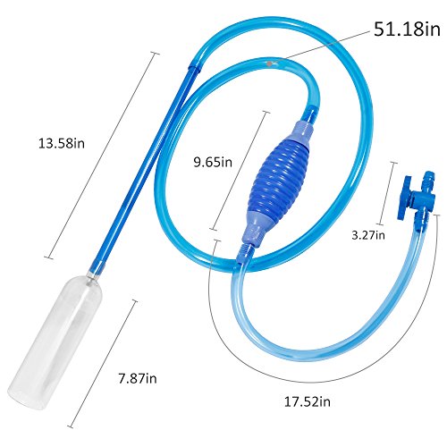 Studio : Zacro Publisher : Zacro Binding : Misc. Product Description Specification: Total Length: 253.8cm Long hose length?130cm Short hose length?44.5cm Hard tube length: 34.5cm Operation blub length: 24.5cm Inlet diameter?4.3cm Usage: 1. Put the cleaner into the fish tank; 2. Place the other outlet of the water pipe into the bucket; 3. Open the valve; 4. Squeeze the suction balloon softly untill the water flows out; 5. Lower the entrance of water to absorb fish manure or the residue of fish feed in the sand. Package included: 1* Aquarium Fish Tank Cleaner 1* fish tank water pipe clip 1* Instruction 0