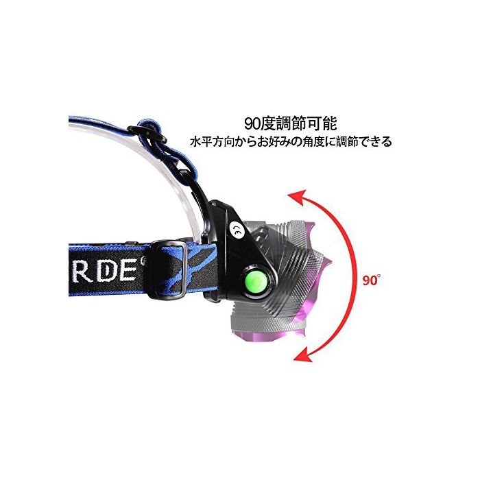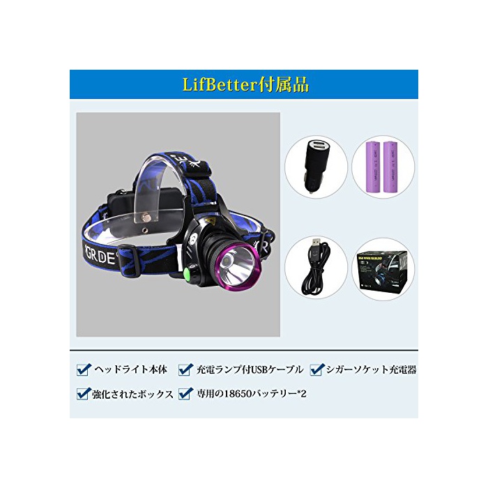 원본상품명: ヘッドライト 充電式 2500ルメン LEDヘッドランプ 90°角度調整 防水 登山 夜釣り アウトドア キャンプに適用 18650電池2本 Lifbetter
