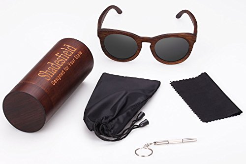 -. Feature : POLARIZED LENSES - Shadesfield sunglasses are using 9-layer polarized lenses with the double UV blocking coating and polarizing film that keep your eyes fully protected against harmful UV, UVA/UVB rays! Water, snow, while driving or at the beach, Shadesfield sunglasses with polarized lenses will help you have good vision! / WOOD SUNGLASSES THAT FLOAT ! - Because of the type of bamboo wood used, Shadesfield sunglasses are lightweight and float in water! Your shades will not be lost, enjoy your favorite water sports and activities! / WAYFARER STYLE SUNGLASSES THAT FIT - These wayfarer sunglasses handcrafted from bamboo wood, the style of frame was designed that looks good on everyone, not just make your sunglasses looks different but also provides perfect fit! / PERFECT GIFT - The type of materials used, the production process of handmade, make each pair of wooden sunglasses unique! A great gift for specials occasions! / PACKAGE FULL OF BENEFITS - Each pair of Shadesfield sunglasses comes with a bamboo sunglasses case and pouch to protect your sunglasses. a microfiber cloth to keep them clean. In case the screws are loose after long time use, we have prepared a proper screwdriver in the package.