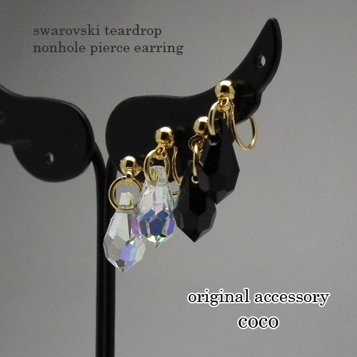 원본상품명: スワロフスキ? ティア ドロップ ノンホ?ル ピアス イヤリング ゴ?ルド ぶらさがり ピアスみたい クリップ ノンスル? オリジナル 手作り 日本製 イアリング swarovski ブラック,-