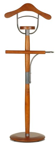 Studio : Cortesi Home Publisher : Cortesi Home Binding : Misc. Product Description The perfect accessory for the well-dressed gentleman, the Oxford valet stand comes in a beautiful cherry wood finish and chrome accents. Organize your suit, tie, belt and accessories all in one place and keeps your outfit neat and handy. Dimensions: 14"W x 18.5"L x 54"H. 0