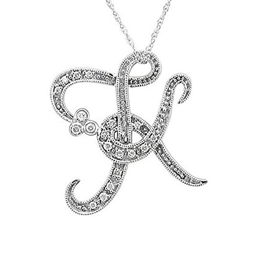 -. Title : 14k White Gold Alphabet Initial K Diamond Pendant Necklace (0.12 Carat)