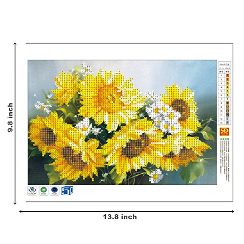 DIY 5D Diamond Painting by Number Kit, Sunflower Crystal Rhinestone Embroidery Cross Stitch Arts Craft Supply Canvas Wall Decor