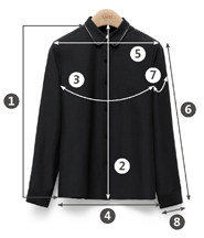| 尺码 | ①前衣长 | ②后中长 | ③胸围 | ④下摆围 | ⑤肩宽 | ⑥袖长 | ⑦袖臂围 | ⑧袖口围 | ||